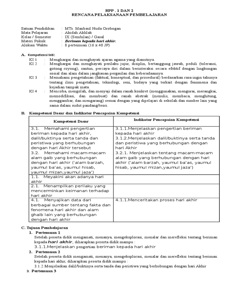 Kementrian agama ri telah menerbitkan peraturan mentri agama (pma) tentang kurikulum 2013 yang berisi kerangka dasar kurikulum madrasa. Rencana pelaksanaan pembelajaran (rpp 1.1). Nah setelah hasil revisi kurikulum 2013 selesai tentunya pasti ada perubahan yang terjadi dan perubahan tersebut akan kami bagikan melalui blog pendidikan ini. Download lengkap rpp materi akidah islam. Itu hanya khusus mapel yang saya ajar yakni akidah akhlak saja.